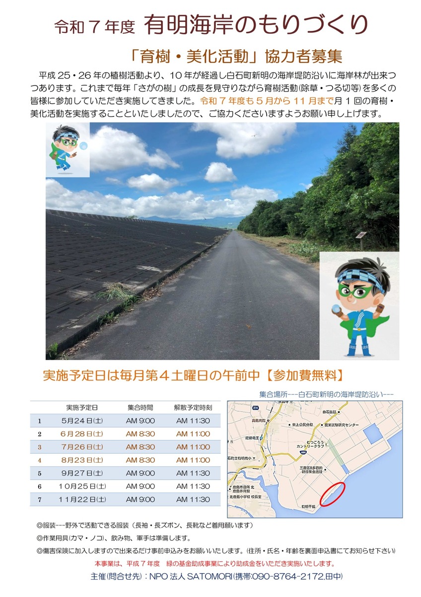 11/22(土)実施「(SATOMORI)有明海岸のもりづくり『育樹・美化活動』」(11/19締切)