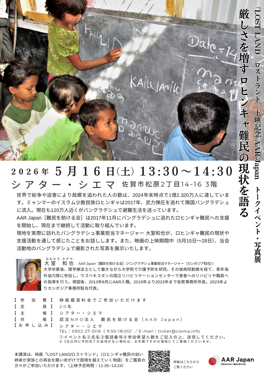 5/16(土)厳しさを増すロヒンギャ難民の現状を語る『LOST LAND/ロストランド』上映記念 AAR Japanトークイベント・写真展