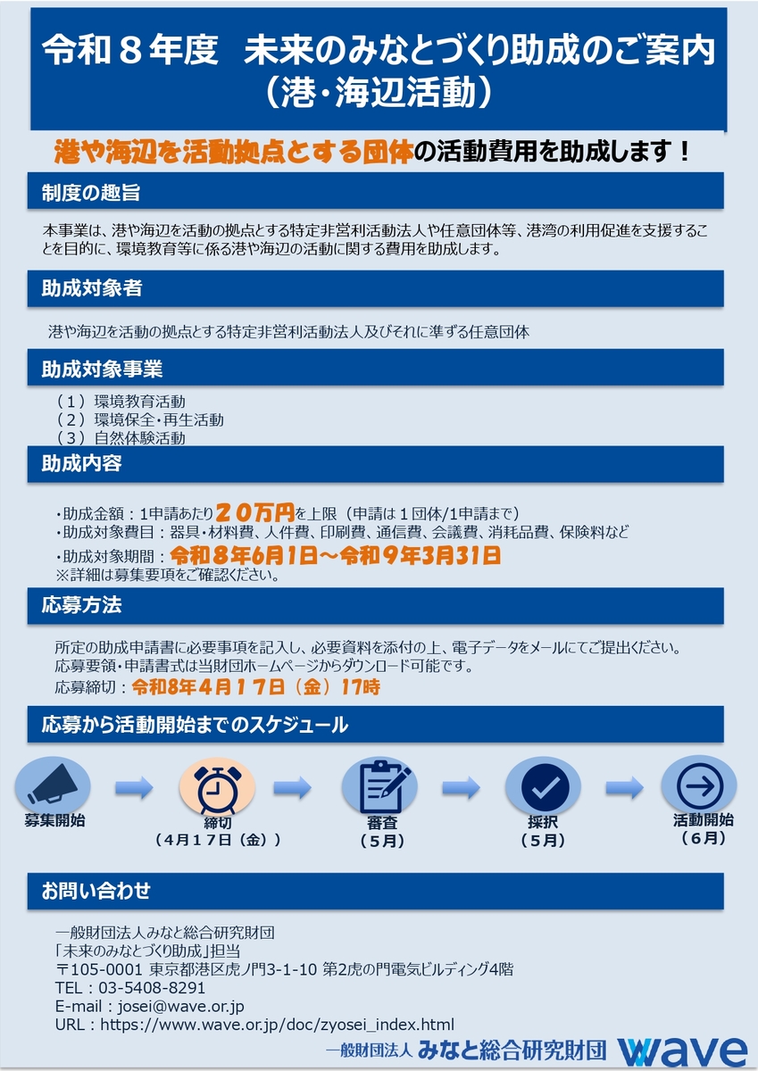 令和8年度 未来のみなとづくり助成(港・海辺活動)