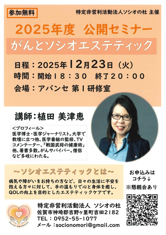 12/23(火)開催「(ソシオの杜)2025年度 公開セミナー『がんとソシオエステティック』」