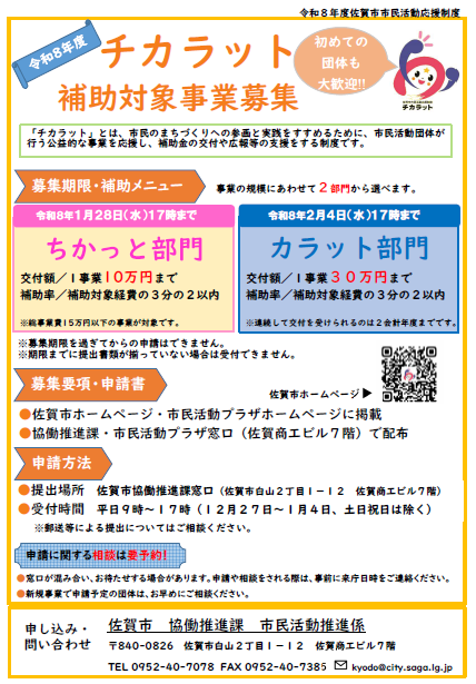 令和8年度 佐賀市市民活動応援制度「チカラット」カラット部門