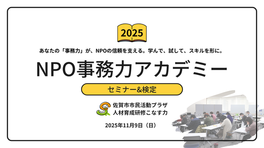 11/9(日)開催「(佐賀市市民活動プラザ)NPO事務力アカデミー《セミナー&検定》」(11/7締切・定員:20名)