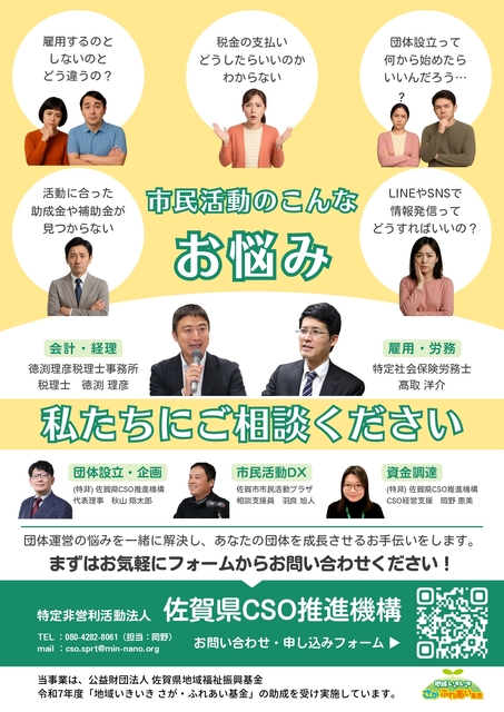 | 団体名 | 特定非営利活動法人佐賀県CSO推進機構 |